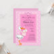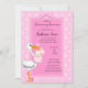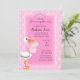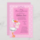 Fondo de punto rosado con una cigüeña con chicas gemelos. Añada los detalles de su fiesta al personalizar la invitación perfecta para una ducha de bebé.