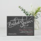 Invitaciones a la ducha nupcial - Elegante tipografía de barro mojado en pizarra gris con romántico texto de acento coral. Sólo tienes que añadir el nombre de la futura novia, la fecha, hora y detalles, y personalizar la información del registro de novias.NOTA Se muestra en pequeñas tarjetas de invitación. Haga clic en Personalizar para cambiar el tamaño, el estilo, las fuentes, el color y el diseño para crear sus propias invitaciones de ducha de boda asequibles.