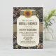 Invitaciones a la ducha de novias Sunflower Mason Jar Camo - presentan un fondo de camo impreso seguido de un frasco de albañil que tiene la parte superior envuelta en dos (diseño impreso) con un girasol colocado en el centro. Una banda de falopa impresa cubre el frente y la parte posterior. En la parte de atrás de cada invitación rústica o campestre se presenta el mismo diseño de invitación a camo que la parte delantera comparte. Este diseño se puede actualizar a varias opciones de stock de tarjetas que se encuentran arriba.