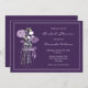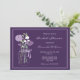 Ruidosas invitaciones a la ducha de novias con un frasco de albañil lleno de flores violetas y lilas sobre un fondo morado.