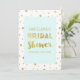 Invitaciones a la ducha de personalizado con efecto dorado con motivos de confeti y azul turquesa color pastel claro con textos modernos con letras a mano. Personalizable con tu texto.