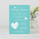 Elegantes invitaciones a la ducha de novias azul turquesa y blanca. El fiesta de boda personalizado invita con un pequeño arco blanco. Forma personalizar. Color de fondo personalizado, es decir aqua. Hermoso texto de escritura elegante con corazones de amor vintage.