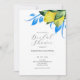 Celebra la futura novia con estas elegantes invitaciones a la ducha de novias, con limones acuarelas y hojas botánicas en azul y amarillo. Inspirada en la belleza de la costa mediterránea, esta ducha de matrimonio invita a capturar el encanto de un jardín de cítricos italiano. Diseñadas con caligrafía moderna y obras de arte sofisticadas de acuarelas, estas invitaciones aportan un toque fresco y elegante a cualquier celebración. Personalizar fácilmente sus detalles con nuestra plantilla fácil de usar. Descubra más invitaciones mediterráneas para la ducha de novias en www.zazzle.com/dotellabelle.