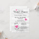 Invitaciones a la ducha de novias con tarro de madera de grano blanco rústico. Diseño de frasco de vidrio de época. La fiesta de bodas al aire libre invita con corazones adorables y desvanecidos. Forma de corte de vieira personalizar. Hermoso texto de tipografía de escritura elegante con símbolos de amor vintage. Hermosa temática de moda de campo con fondo de panel de granos de madera clara. Diseño de patrones de madera con corazones brillantes de neón rosado.