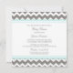 Invitaciones personalizadas a la ducha de bebé en elegantes y modernos tramos de zigzags chevron azul turquesa, gris y blanco. Personalizable con tu texto, contáctanos para solicitar un cambio de color.
