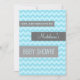 Invitaciones personalizadas a la ducha de bebé en un elegante y moderno y brillante azul acuático, carbón de carbón oscuro gris y blanco retro chevron zigzags patrón de rayas. Personalizable con tu texto, contáctanos para solicitar un cambio de color.