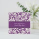 Invitaciones personalizadas para la ducha de bebé en un elegante y moderno diseño de damasco floral clásico morado y blanco. Personalizable con tu texto, contáctanos para solicitar un cambio de color.