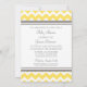 Invitaciones personalizadas para la ducha de bebé en elegantes y modernos y luminosos tonos de limón amarillo, gris y blanco chevron zigzags. Personalizable con tu texto, contáctanos para solicitar un cambio de color.
