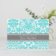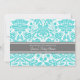 Invitaciones personalizadas a la ducha de bebé en un elegante y moderno diseño azul turquesa, gris y blanco clásico y vintage de damasco floral. Personalizable con tu texto, contáctanos para solicitar un cambio de color.