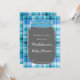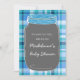 Invitaciones personalizadas para la ducha de bebé en elegantes y modernos tonos azules, verde azulados, grises y blancos trenzados con un lindo ilustracion de jarra de albañil. Personalizable con tu texto, contáctanos para solicitar un cambio de color.