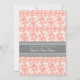 Invitaciones personalizadas para la ducha de bebé en elegantes y modernos tonos rosa melocotón, color gris y blanco clásico, con damasco floral. Personalizable con tu texto, contáctanos para solicitar un cambio de color.