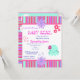 Una linda invitación para una ducha de bebé con pulpo ciano, rayas, estrellas y flores. Los colores son rosa, rosa caliente, violeta, azul y agua. Excelente para cualquiera que le guste cualquier cosa simple, colorida, personalizado, cortesía o niñita. Si buscas invitaciones lindas para bebés con rayas, flores, estrellas y animales, para que te puedas personalizar, esto puede ser para ti. Puede personalizar esto agregando su propio texto o imágenes. Visita mi tienda para ver productos más únicos con adorables patrones, y diseños de animales personalizados en ellos.