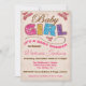 Invitaciones a la ducha para bebé purpurina Girl Vintage Baby Shower Encantadora invitación a la ducha de bebé con brillantes letras de imitación en un fondo cremoso destartalado. Viene con un brillo rosado hacia atrás.