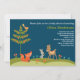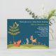 Una invitación muy agradable, ideal para los fiestas con temática forestal y las duchas para bebés. Presenta zorro, ciervo y conejo sobre fondo azul profundo.