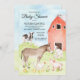 Invitaciones a la ducha de animales de granja con adorables animales de granja acuáticas en un cielo acuarela y fondo de hierba. Esta invitación a la ducha de bebé animal de granja se personaliza fácilmente para tu evento simplemente añadiendo tus detalles.