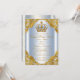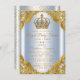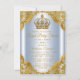 Invitaciones a la ducha de bebé del príncipe azul con hermosa corona azul y dorada sobre un elegante fondo de remolino azul y dorado en la parte delantera y hermosos puntos dorados sobre el mismo fondo azul bebé en la parte posterior. Estas invitaciones a la ducha para bebés de príncipe azul y oro se personalizan fácilmente para tu evento simplemente añadiendo tus detalles en el estilo de letra y la redacción de tu elección. Puede mover la corona y el divisor de oro según sea necesario.