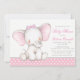Invitaciones a la ducha de una bebé de Elephant dulce con una tierna acuarela de elefante usando una proa rosa sobre un fondo de un punto polka rosa. Estas adorables invitaciones a la ducha de bebé elefante son fáciles de personalizar para tu evento simplemente añadiendo tus detalles. También puede agregar un color de fondo.