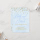 Invitaciones de brunch con bonito guion bebe y brunch sobre una acuarela azul claro y fondo de confeti purpurina dorado. Esta invitación al brunch de la ducha para bebés en azul y dorado se personaliza fácilmente para tu evento simplemente añadiendo tus detalles en el estilo de letra, color y redacción de tu elección. Este es un diseño impreso sin ningún purpurina real.