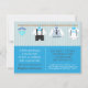 Anuncie la llegada del pequeño caballero con esta invitación de colores azules que viene con ropa de bebé colgada de las paredes que incluye pañales para bebé, corbata de arco inteligente y camisa y pantalones cortos, un chaleco diamantífero y corbata azul marino y un bebé con corbatas y cordones de arco falsos. Patrón de franjas azules para el fondo. Personalice fácilmente los detalles de su fiesta. ¡El color azul es adecuado para los niños!