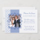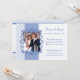 Invitaciones a la fiesta de aniversario de bodas de oro con foto en un tema de color azul pervinca. Estilo clásico. Plantilla personalizable. © 2010