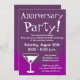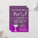 Invitaciones a la fiesta de aniversario | Invitaciones personalizadas para invitados. Texto de anuncio y color de fondo personalizables. Diseño de copa de cóctel con colores púrpura. 50º aniversario de bodas.