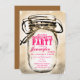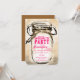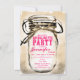 Invitaciones a la fiesta de Bachelorette Mason Jar, de color rosa cálido, y marrón, con una variedad de tipos de letra para un estilo tipográfico con tipos de letra rústicos de temática occidental. La parte posterior es de color sólido beige marrón marrón. Estos son excelentes para las futuras novias rurales y para cualquiera que busque un estilo vintage o campestre occidental. Calor rosa Fuchsia y Brown con una mirada angustiada.