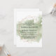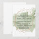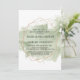 Moderno y minimalista este lavabo de color verde flota a través de la invitación blanca, enmarcando perfectamente los detalles de tu fiesta de compromiso. Un delicado marco geométrico de oro subió define aún más el espacio. El texto es fácil de personalizar.
