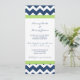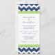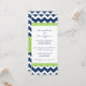 Invitaciones de la fiesta de compromiso en elegante azul marino oscuro, verde lima brillante y blanco diversión y el trébol chevron zigzags patrón de rayas. personalizable completo con los detalles de su parte de compromiso. También disponible en una amplia gama de productos bodas a juego.
