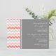 Las invitaciones de la fiesta de compromiso en elegantes melocotón naranja rosa, gris y blanco diversión y retro chevron zigzags rayas patrón vintage. personalizable completo con los detalles de su parte de compromiso. También disponible en una amplia gama de productos bodas a juego.