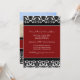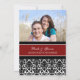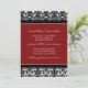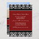 Invitaciones de la fiesta de compromiso en un elegante patrón de damasco floral clásico rojo, negro y blanco. personalizable completo con los detalles de su fiesta de compromiso y su propia foto. También disponible en una amplia gama de productos bodas a juego.