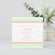 Las invitaciones de la fiesta de compromiso en elegantes tonos rosa melocotón, verde menta pastel y blanco diversión y moderno patrón de zigzags chevron. personalizable completo con los detalles de su parte de compromiso. También disponible en una amplia gama de productos bodas a juego.