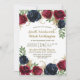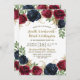 Las invitaciones del Partido Navy Blue Burgundy Engagement - incluyen elegantes rosas acuáticos y peonías en varios tonos de Marsala, borgoña, merlot y azul marino con elegante vegetación. Las flores y la vegetación aportan un toque de color dorado. El diseño de la fuente muestra colores de tinta dorada y bronce impresos para una decoración adicional. Vea la colección coincidente en esta página para ver todos los productos coincidentes.