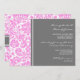 Invitaciones de la fiesta de compromiso en elegantes tonos bebebederos, color gris carbón oscuro y blanco clásico y moda adamascado floral. personalizable completo con los detalles de su parte de compromiso. También disponible en una amplia gama de productos bodas a juego.