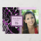 Fotografía personalizado 16º cumpleaños invitaciones a la fiesta en elegantes torbellinos negros y morados. Añade tus detalles de fotos y fiestas para una invitación única y elegante a la fiesta de cumpleaños.