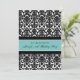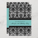 Personalizado 40 cumpleaños invitaciones para fiestas en elegantes damascos florales clásicos de color turquesa, negro y blanco. Añade tu nombre y detalles de fiesta para una invitación única y elegante a la fiesta de cumpleaños número 40.