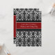 Personalizado 80th Birthday invitaciones de fiesta en elegantes tonos rojos y blancos clásicos de damasco floral. Añade tu nombre y detalles del fiesta para una invitación única y elegante a la fiesta de cumpleaños.