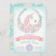 Chicas unicornio invitaciones a fiestas de cumpleaños con unicornio color pastel y flores en un hermoso verde azulado fondo azul brillante oscuro. Estas invitaciones a la fiesta de cumpleaños de unicornio se personalizan fácilmente para tu evento simplemente añadiendo tus detalles.