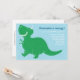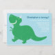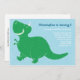 Esta adorable invitación de cumpleaños incluye un feliz dinosaurio T-Rex verde y un fondo azul. Perfecto para la fiesta de cumpleaños de un niño.