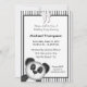 Oso lindo de panda invitando a los niños a una fiesta de cumpleaños. El oso está sobre un fondo blanco y negro de rayas. Usa nuestro personalizar de plantilla sencillo con tu información de fiesta.