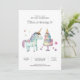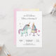 Cálidas invitaciones de cumpleaños de unicornio arcoiris para el cumpleaños de tu pequeña dulce. Cuidada acuarela de unicornio, torta y flores.