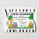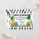 Lanza un fiesta salvaje de safari con esta invitación divertida. Cuenta con un borde de rayas de tigre, viñas, hierba, una jirafa, un hipopótamo y una cebra.