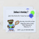 Una gran invitación para una fiesta de cumpleaños de tenis para personalizar con toda la información del fiesta de su propio hijo. Cuenta con un oso fresco con su atuendo de tenis, un racquet y una pelota de tenis. Un par de coloridos globos flotantes lo acentúan también. Una invitación divertida para el cumpleaños del tenis.