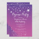 La invitación a la fiesta de pijama para los chicas incluye un fondo morado con estrellas blancas rotas. Nuestra popular invitación de cumpleaños para fiestas de lúgubre está disponible en nuestra tienda en una variedad de elegantes colores.
