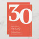 Presentamos una divertida invitación a una fiesta de cumpleaños 30 en blanco y rojo naranja que combina perfectamente el encanto del viejo mundo del audaz número de letra serif '30' con una plantilla moderna y personalizable para el usuario. Esta invitación no es solamente una carta, es un gran placer apreciar el hito de cumplir 30 años.