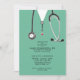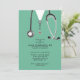 Invitaciones creativas de enfermería con exfoliación hospitalaria y estetoscopio. Edite texto para crear una invitación o invitación única de fiesta de graduación de la escuela de enfermería.