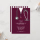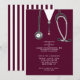 La graduación creativa de la escuela de enfermería invita a presentar exfoliaciones de hospital de marrones y un estetoscopio. Editar texto para crear una invitación o invitación de fiesta de graduación de la escuela de enfermería.