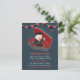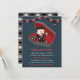 Beba para Halloween! ¡Una encantadora invitación a la fiesta de Halloween que es amigable para los niños! Tiene un chico vampiro adorable vestido con un traje bonito, corbata de arco rojo y capa, sentado en un ataúd. Él se aferra a una bebida que tiene una paja y una guarnición de murciélago. En el ataúd hay una almohada con forma de cráneo para mayor comodidad. En la parte superior hay banderas rojas y negras con un murciélago vampiro colgando boca abajo entre las banderas. ¡Una invitación que es agradable para los niños y lo suficientemente caprichosa para los adultos! Personalice fácilmente los datos de su fiesta.