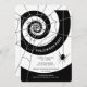Invitaciones modernas de halloween en blanco y negro con un remolino blanco y negro de moda decorado con telaraña y araña colgante. Personalizar con sus propios detalles de Halloween Party. Perfecto para elegantes fiestas negros y blancos de Halloween, fiestas de cumpleaños de Halloween, o cócteles adultos de Halloween o fiestas de oficina.