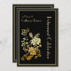 Elegante diseño floral en negro y dorado con un diseño moderno y limpio. Una elección elegante para la fiesta de jubilación de una mujer. Personalizar el texto frontal de la tarjeta y, a continuación, rellene la información de evento sobre el diseño posterior coincidente.