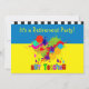 Invitaciones a la Fiesta de Jubilación de Profesores de Arte, "Es un Fiesta de Jubilación", pintar diseño de corazón salpicado de fondo azul y amarillo. La vuelta de las invitaciones es totalmente personalizable.